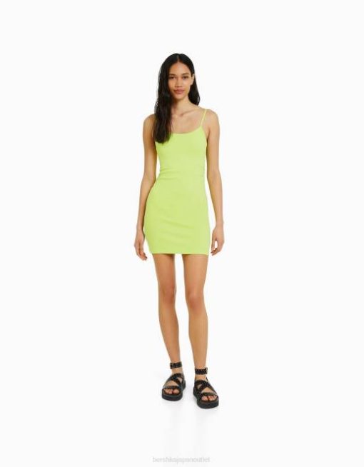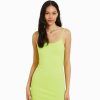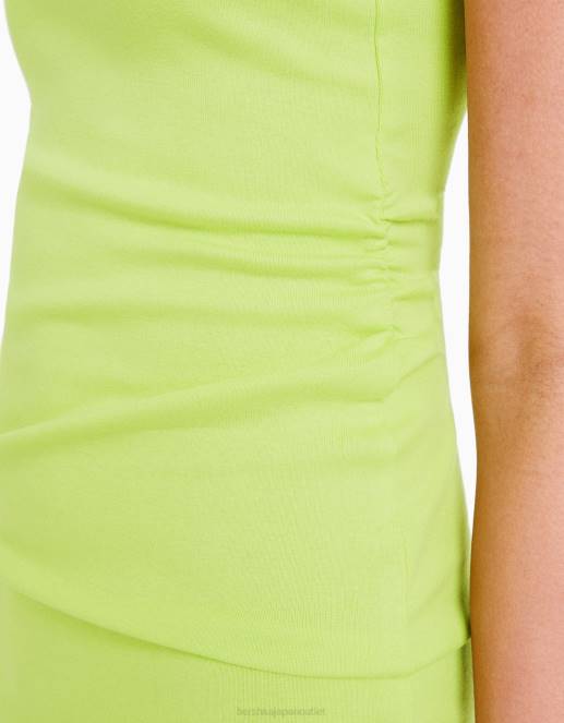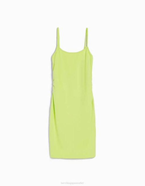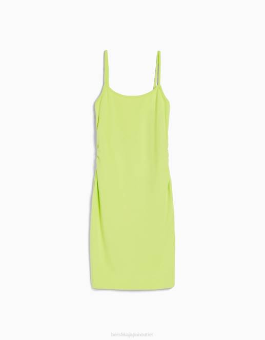 女性 Bershka サイドギャザー付きストラップミニドレス 6044153 衣類 ライム