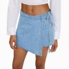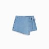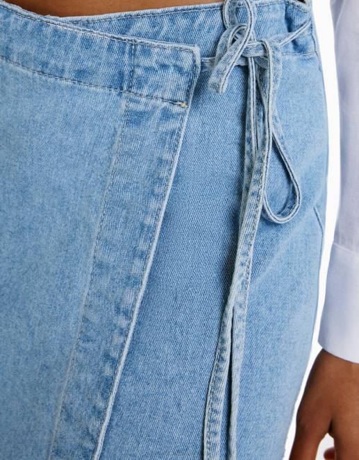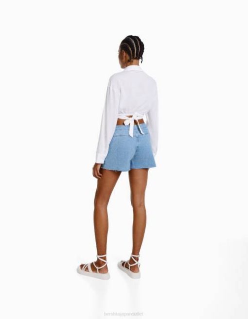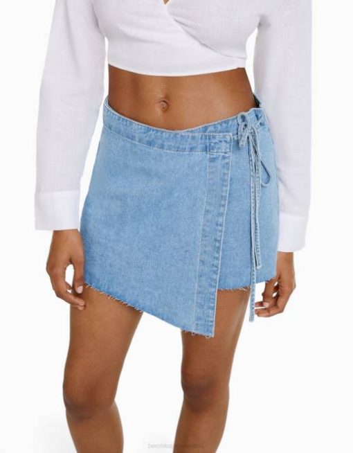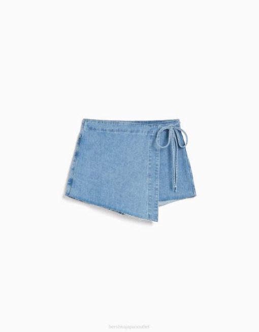 女性 Bershka サイドノット付きデニムスコート 60441664 衣類 ライトブルー