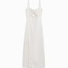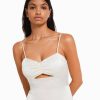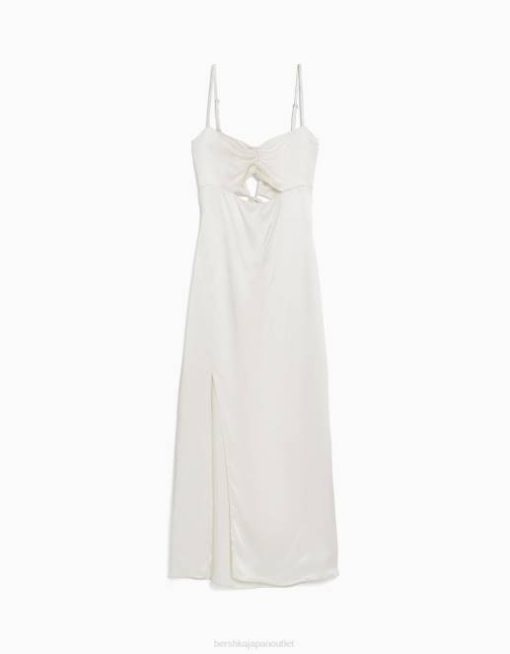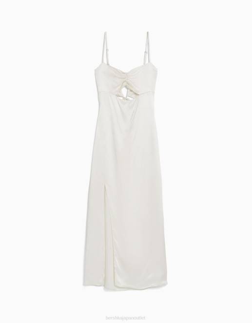 女性 Bershka サテンストラップ付きミディドレス 6044177 衣類 クリーム