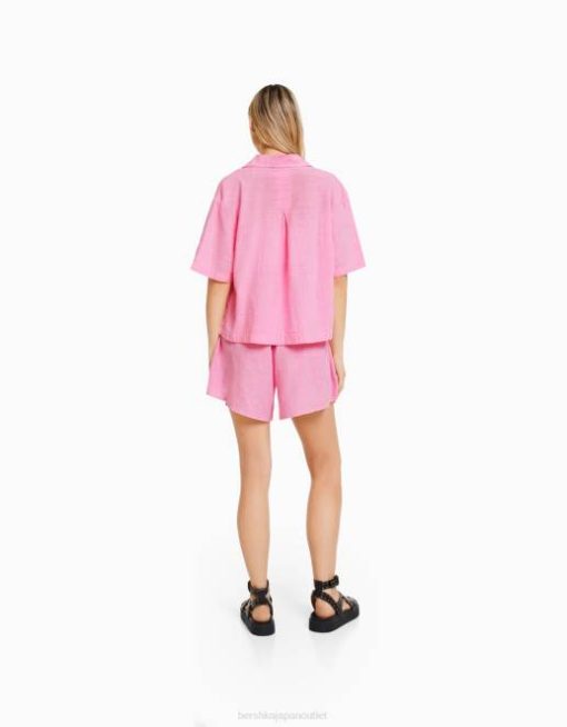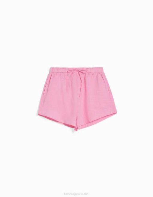 女性 Bershka シャーリングゴム付き素朴なショートパンツ 60441709 衣類 ピンク