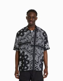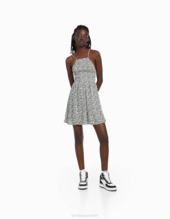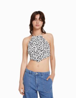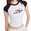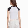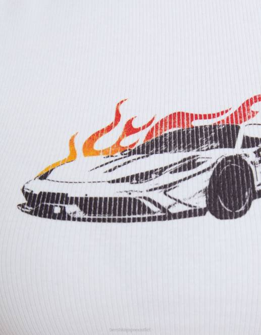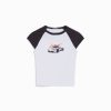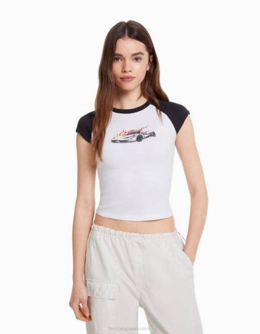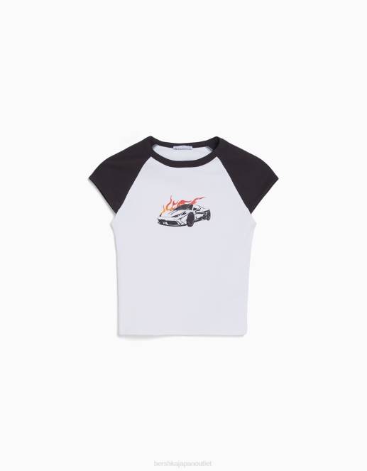 女性 Bershka ショートラグランスリーブのプリントTシャツ 6044388 衣類 白黒