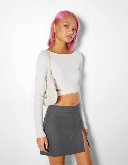 女性 Bershka シルバーエフェクトバックル付きショルダーバッグ 60442373 アクセサリー クリーム