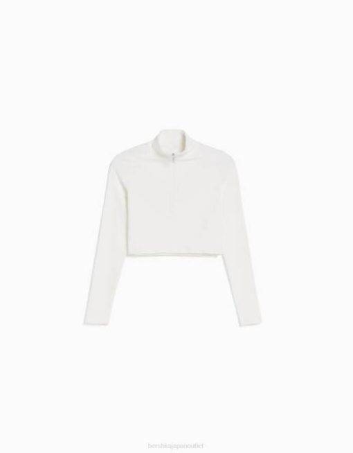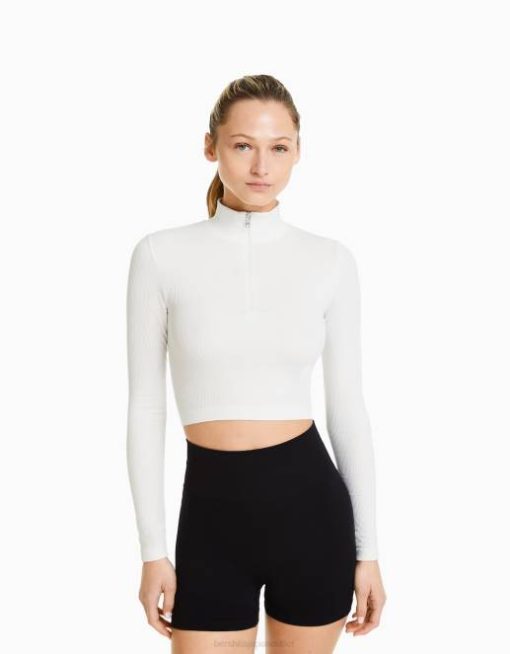 女性 Bershka シームレスなジッパー付き長袖 T シャツ 6044534 衣類 クリーム