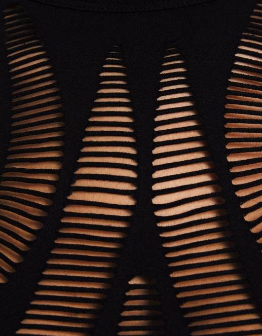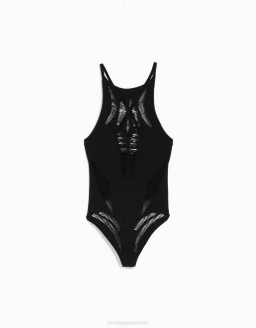 女性 Bershka シームレスカットアウトボディスーツ 6044829 衣類 黒