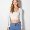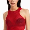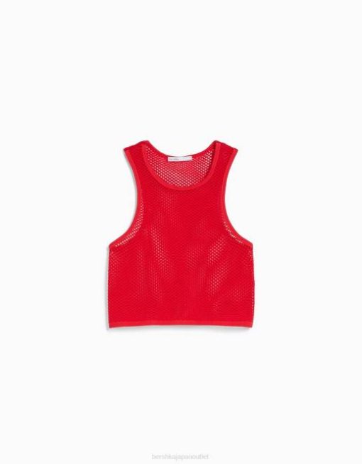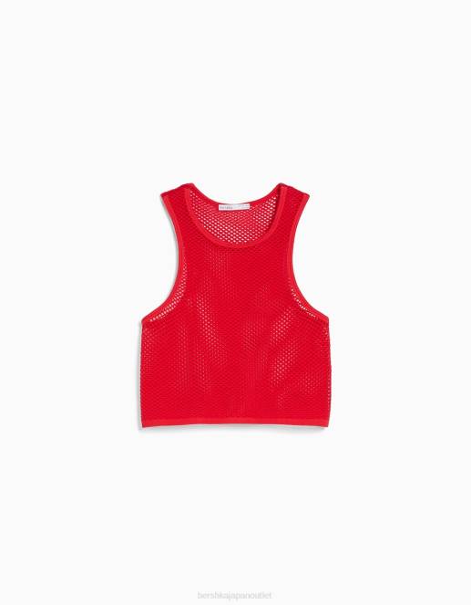 女性 Bershka シームレスメッシュノースリーブTシャツ 6044356 衣類 赤