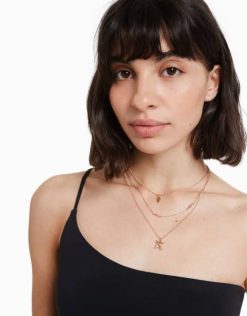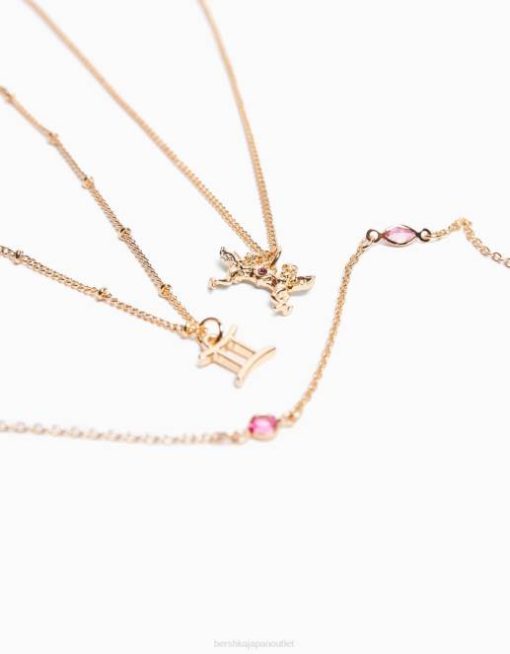 女性 Bershka ジェミニ星座ネックレス 3 個セット 60444233 アクセサリー 金