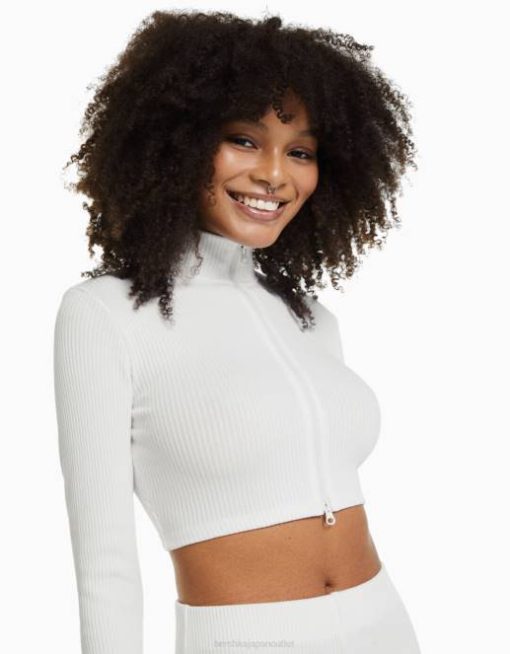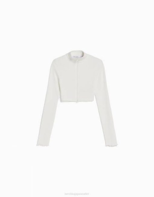 女性 Bershka ジッパー付きクロップドハイネックカーディガン 6044962 衣類 オフホワイト