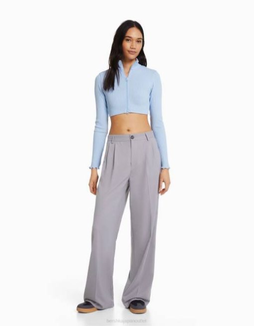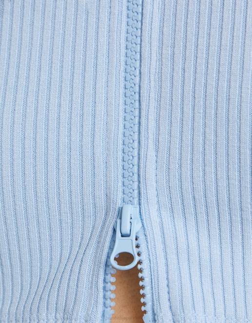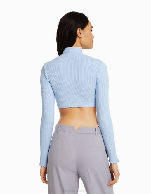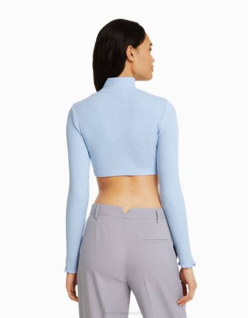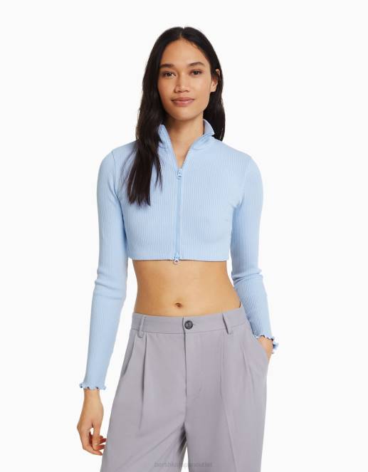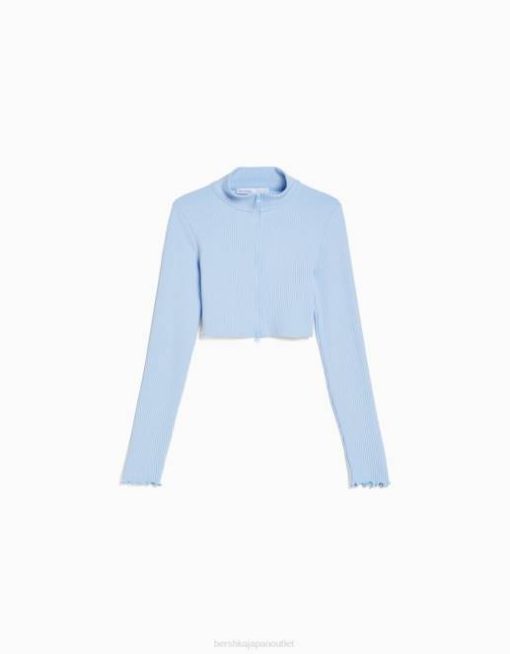 女性 Bershka ジッパー付きクロップドハイネックカーディガン 60441032 衣類 ライトブルー