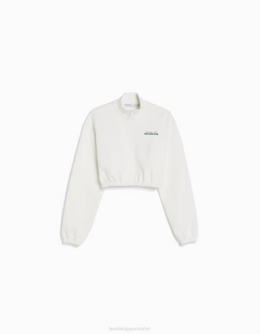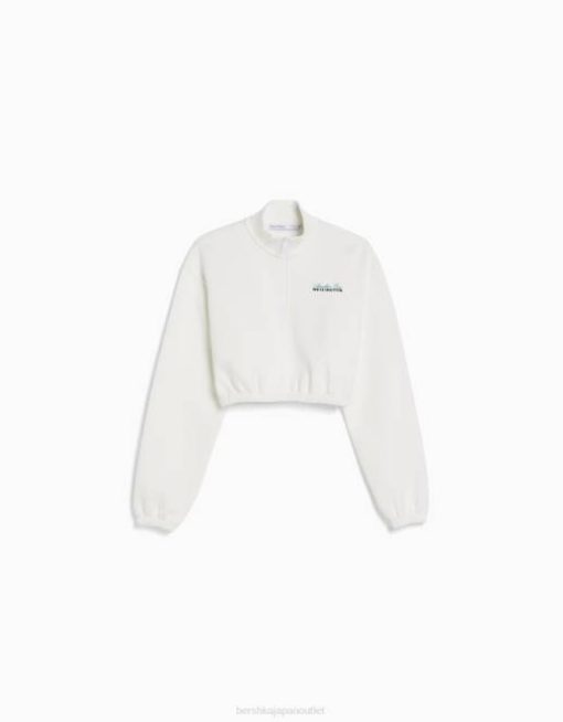 女性 Bershka ジッパー付きプリントスウェットシャツ 60441257 衣類 クリーム