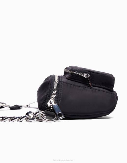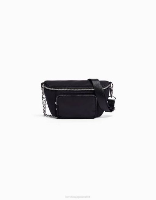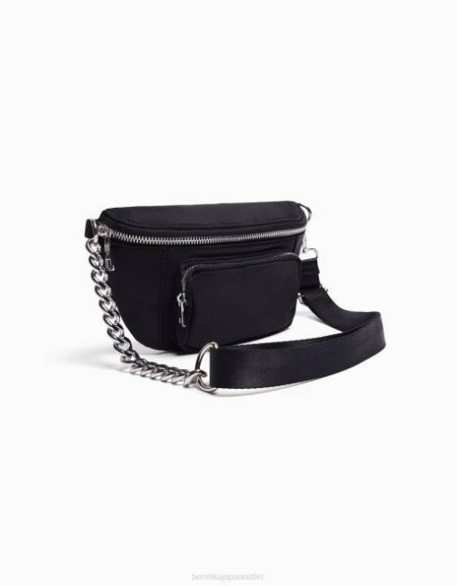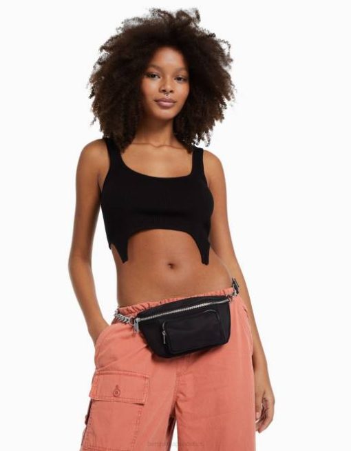 女性 Bershka ジッパー付き布製ベルトバッグ 60442395 アクセサリー 黒