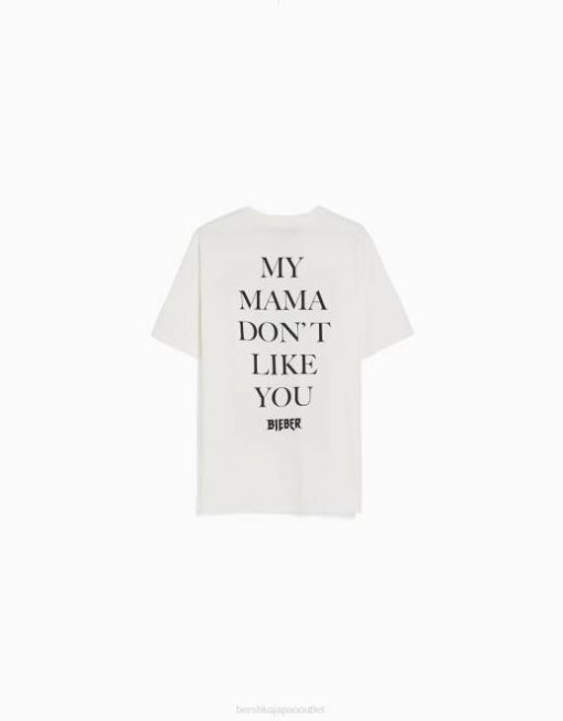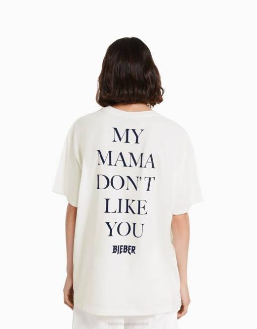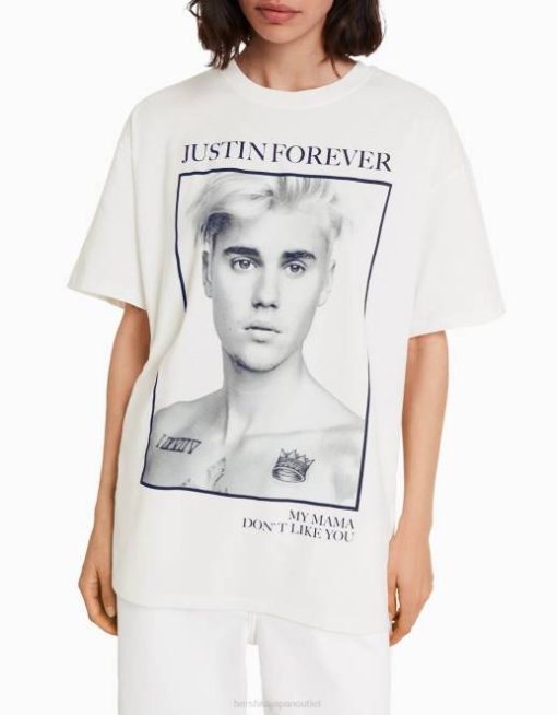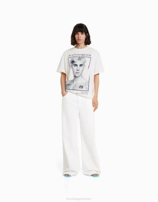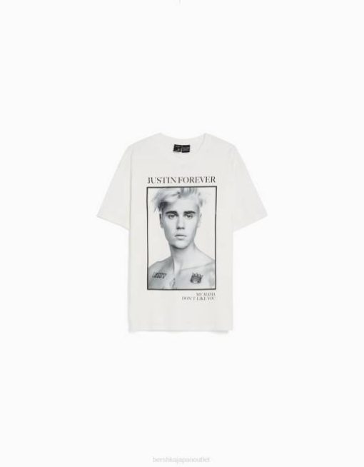 女性 Bershka ジャスティンビーバープリント半袖Tシャツ 6044325 衣類 オフホワイト