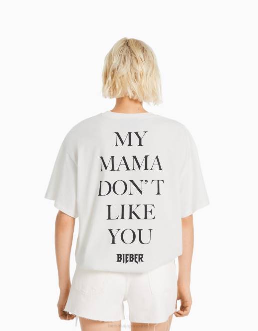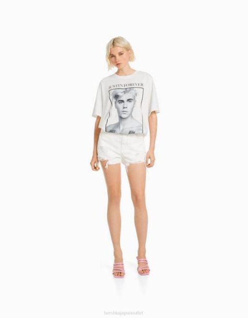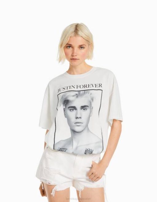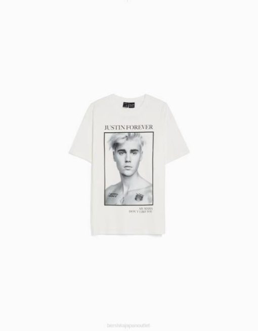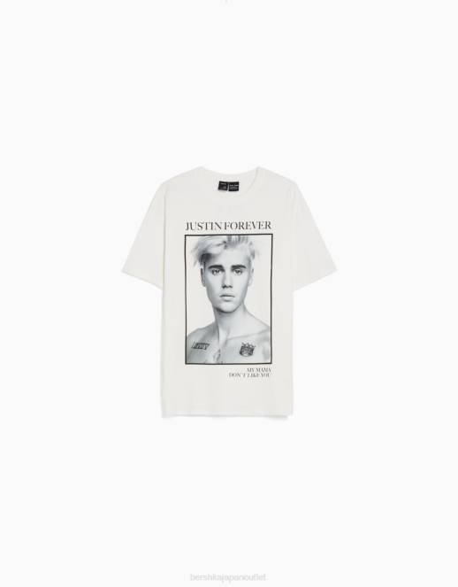 女性 Bershka ジャスティンビーバープリント半袖Tシャツ 6044472 衣類 オフホワイト
