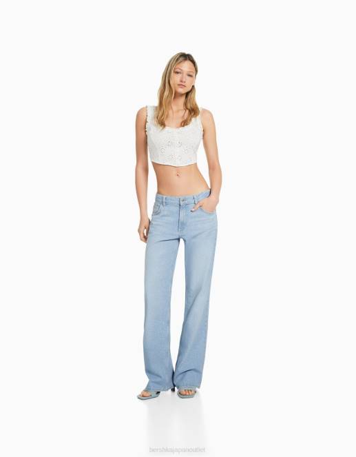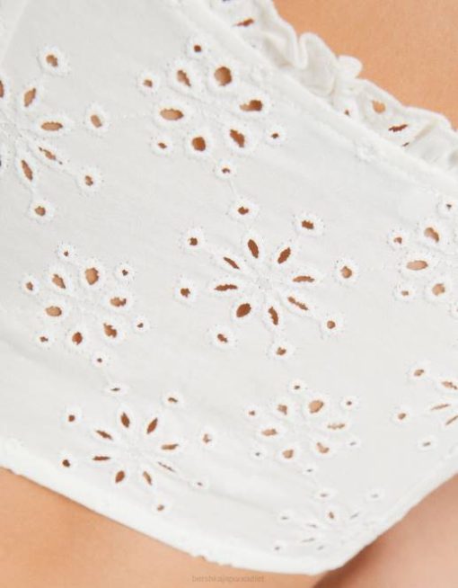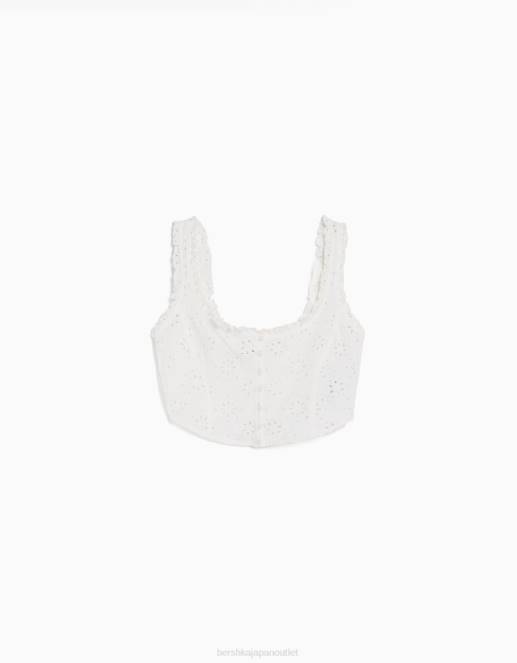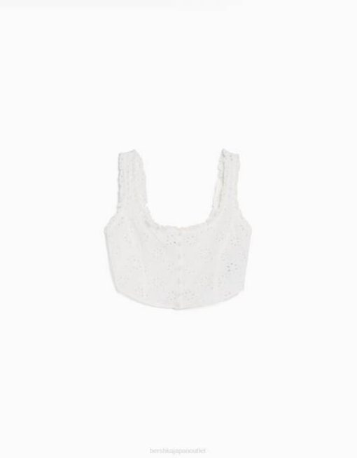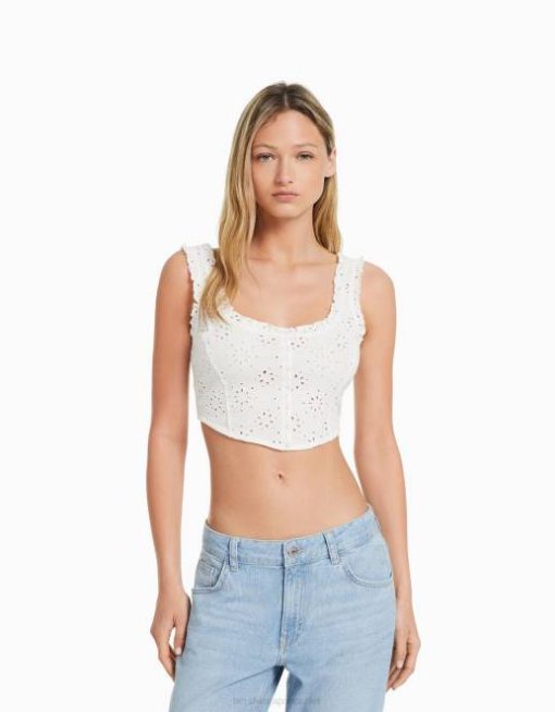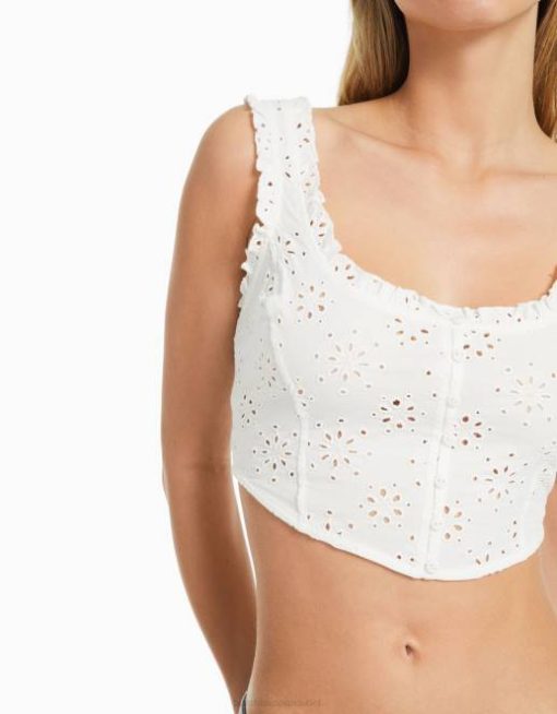 女性 Bershka スイス刺繍入りコルセットスタイルクロップトップ 6044516 衣類 白