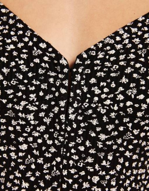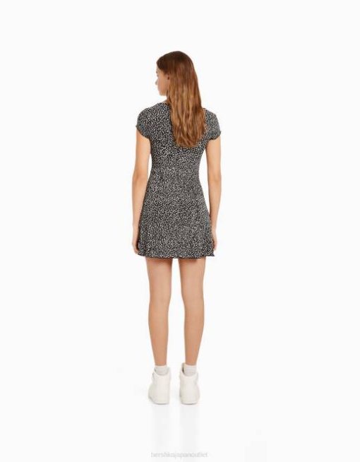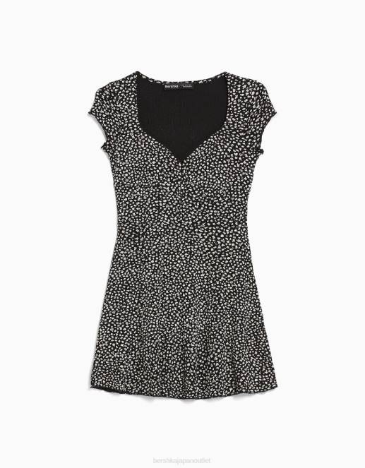 女性 Bershka スイートハートネックラインのプリント半袖ミニドレス 6044273 衣類 黒