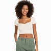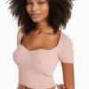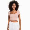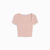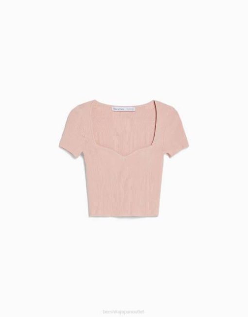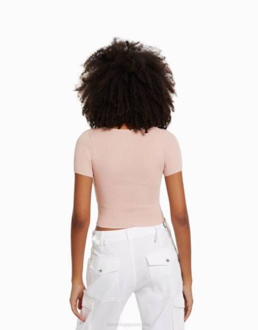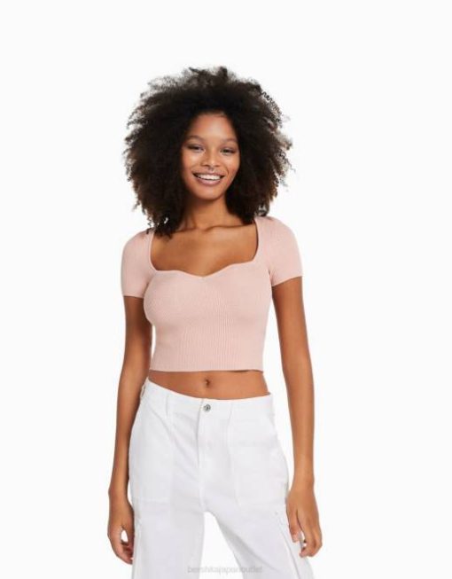 女性 Bershka スイートハートネックラインの半袖ニットセーター 6044540 衣類 ピンク