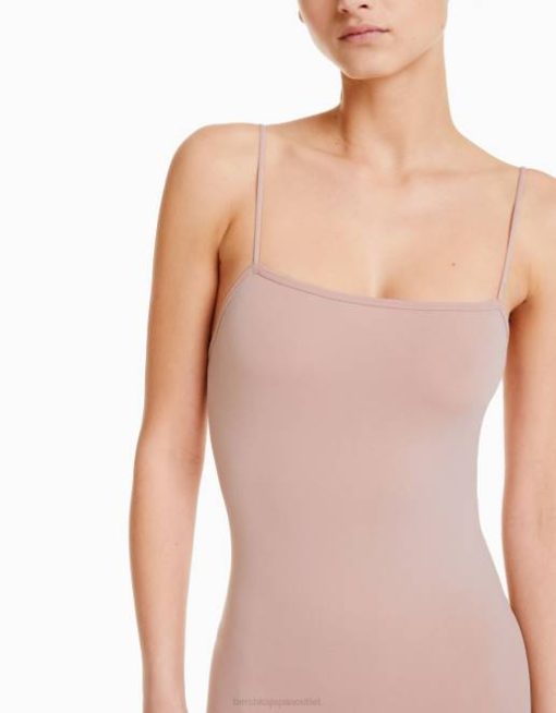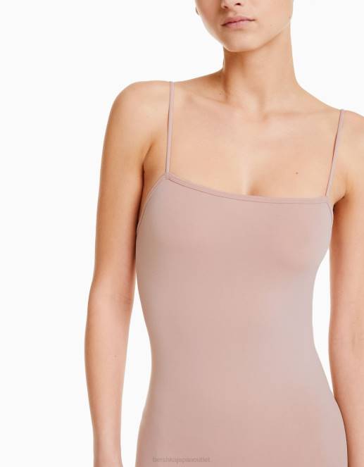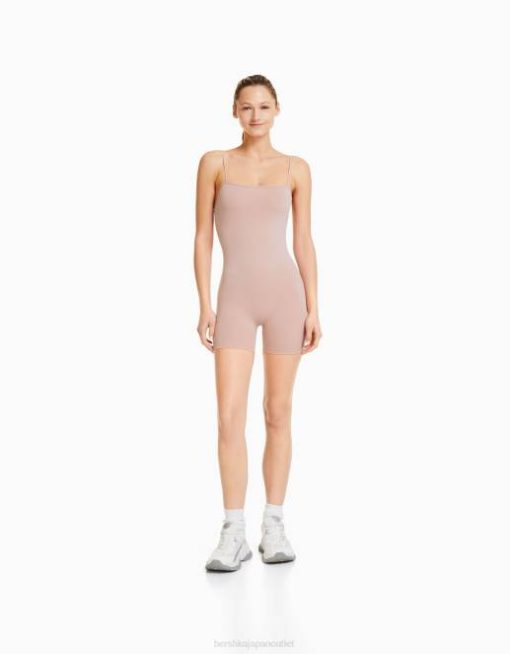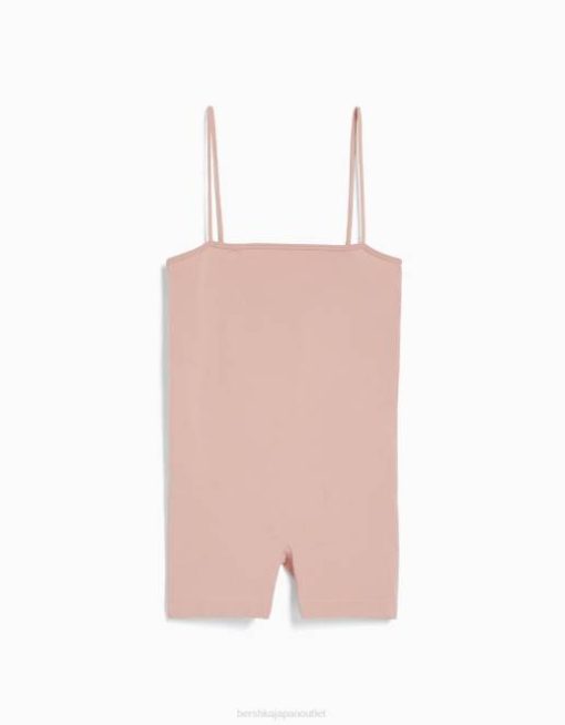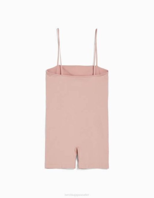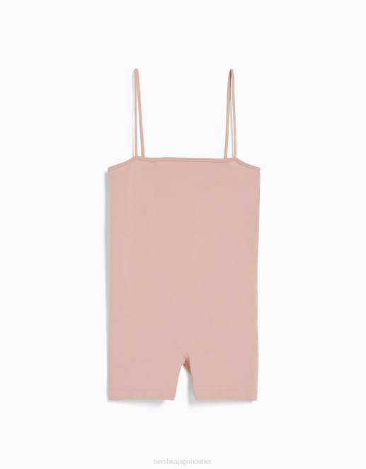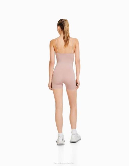 女性 Bershka スクエアカットネックラインのシームレスなストラップ付きサイクリングジャンプスーツ 604458 衣類 ピンク