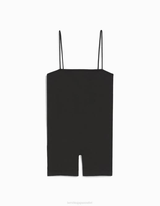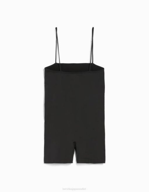 女性 Bershka スクエアカットネックラインのシームレスなストラップ付きサイクリングジャンプスーツ 60444085 衣類 濃い灰色
