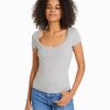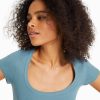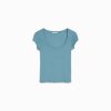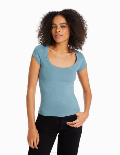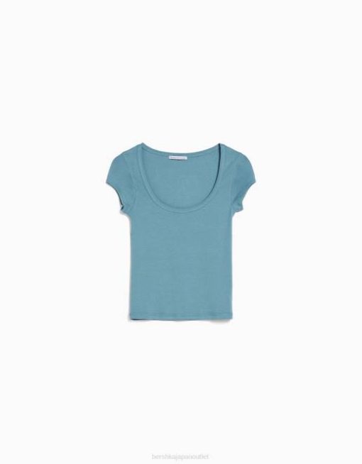 女性 Bershka スクープネックの半袖Tシャツ 6044568 衣類 洗い流された青