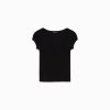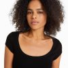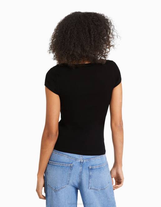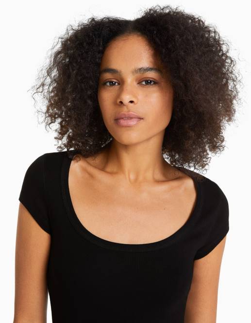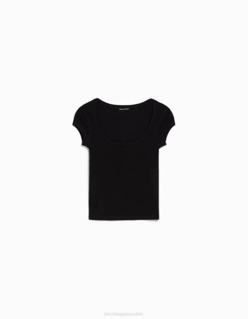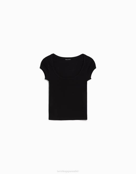 女性 Bershka スクープネックの半袖Tシャツ 6044569 衣類 黒