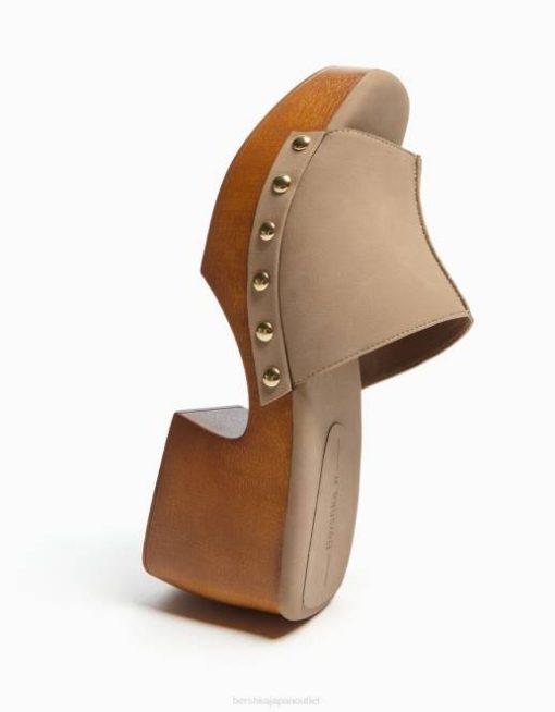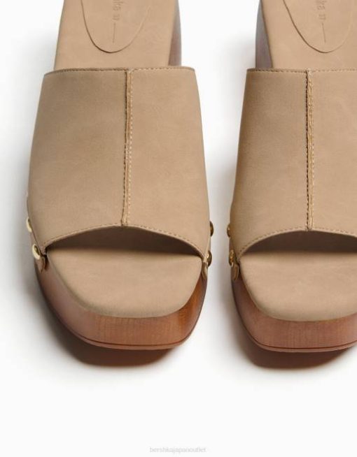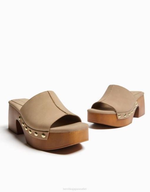 女性 Bershka スタッズ付きハイヒールプラットフォーム下駄 60442182 履物 砂
