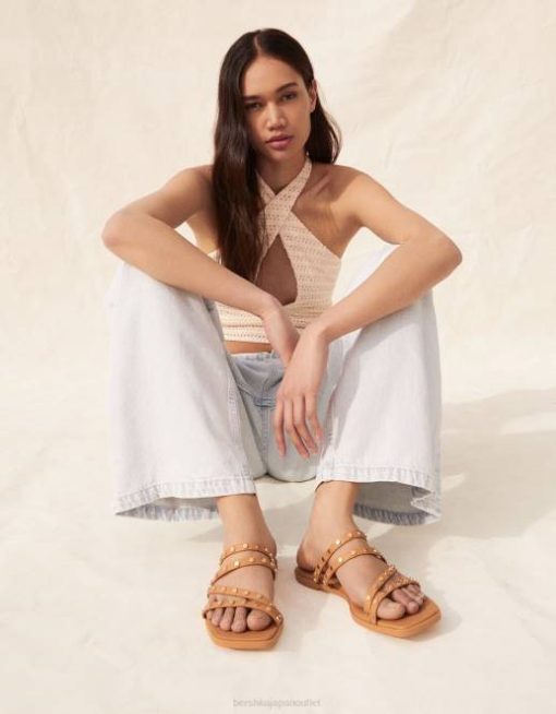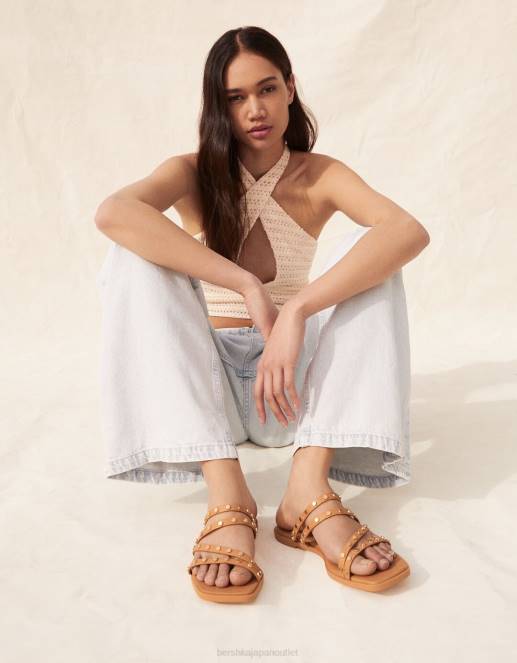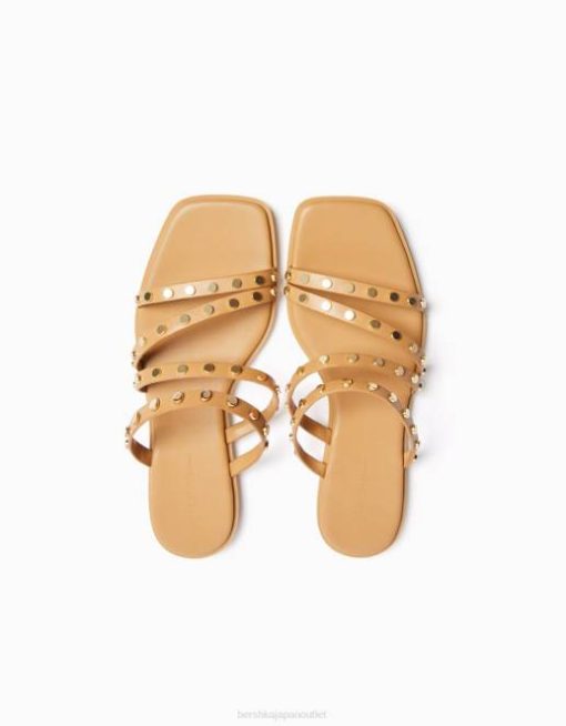 女性 Bershka スタッズ付きフラットスライダーサンダル 60442236 履物 砂