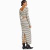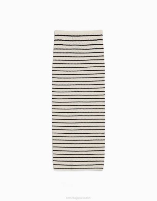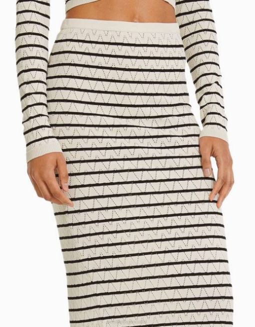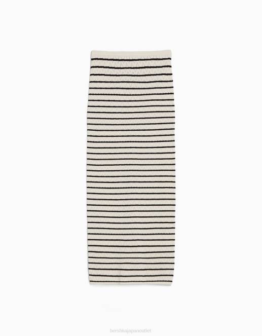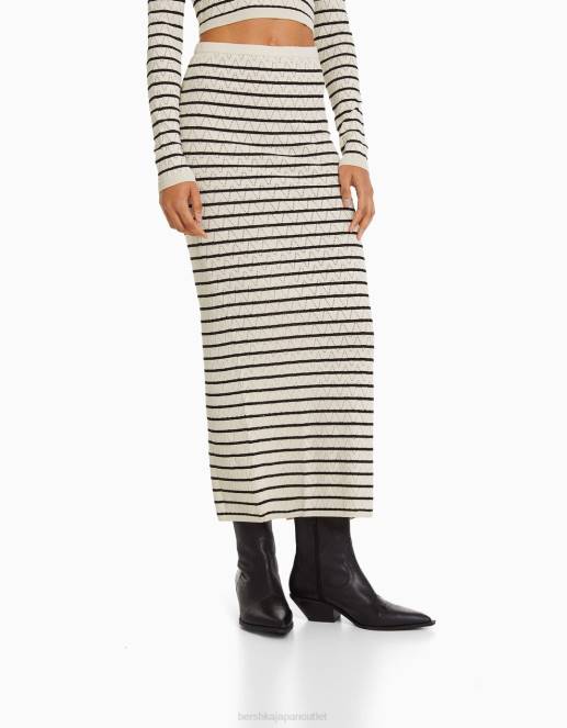女性 Bershka ストライプオープンニットロングスカート 6044990 衣類 クリーム