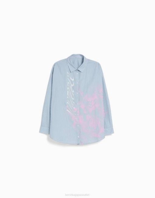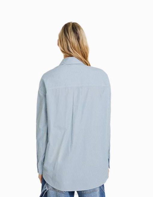 女性 Bershka ストライププリントポプリントップとシャツのセット 60442047 衣類 ライトブルー