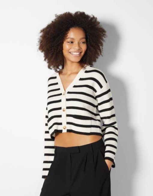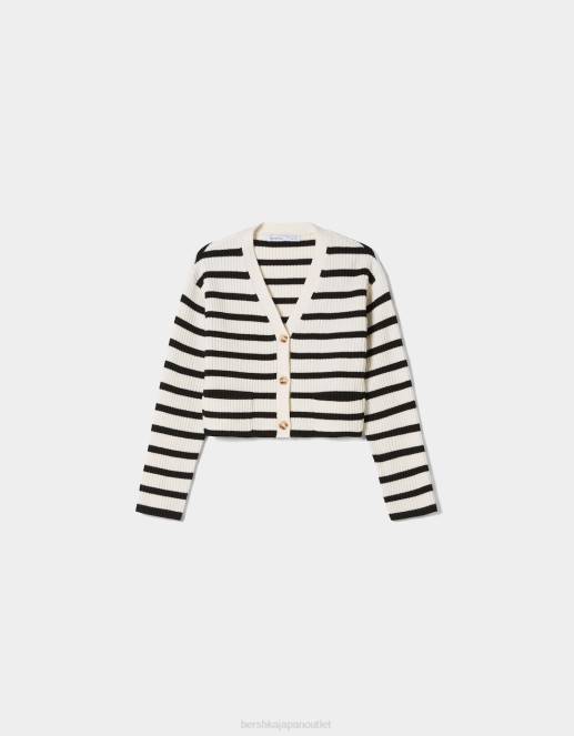 女性 Bershka ストライプリブカーディガン 6044997 衣類 クリーム