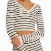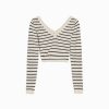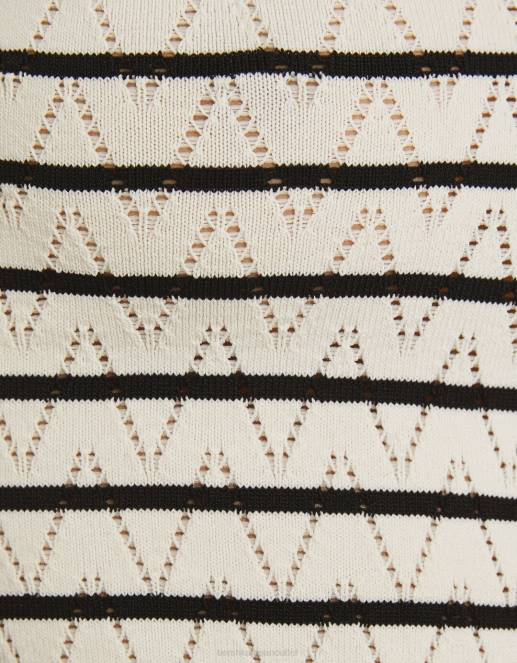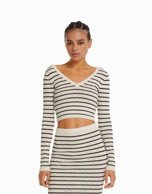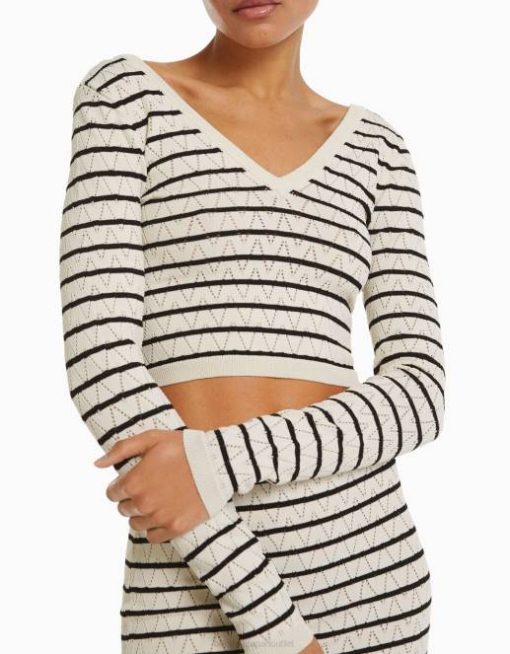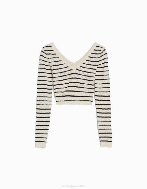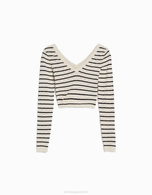 女性 Bershka ストライプ オープンニット Vネックセーター 6044989 衣類 クリーム