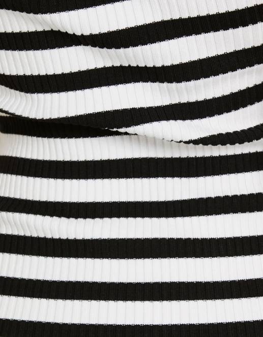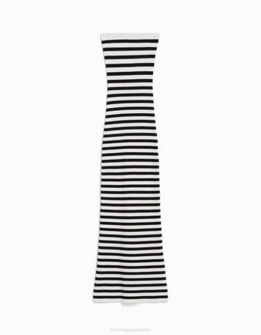 女性 Bershka ストライプ バンドゥ ミディドレス 604443 衣類 白