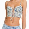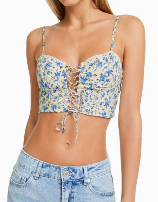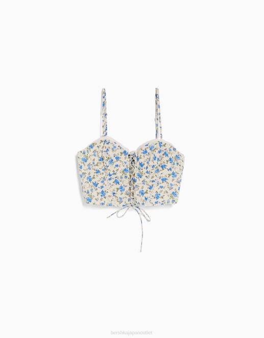 女性 Bershka ストラップとネクタイのディテールが付いたプリントコルセットトップ 6044757 衣類 色とりどりの