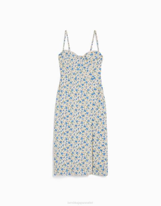 女性 Bershka ストラップとバックレースアップ付きフローラルプリントミディドレス 60441927 衣類 色とりどりの