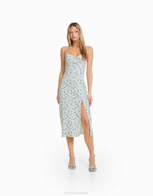 女性 Bershka ストラップとバックレースアップ付きフローラルプリントミディドレス 6044179 衣類 色とりどりの