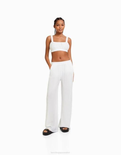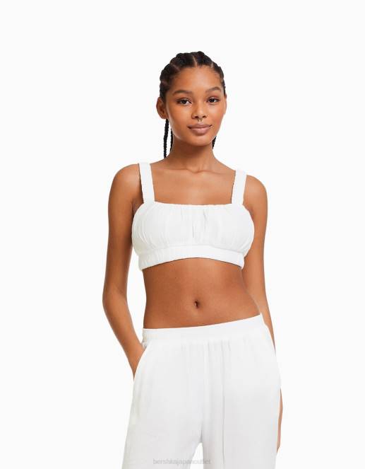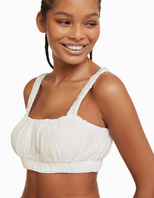 女性 Bershka ストラップクレープブラレットトップ 6044846 衣類 クリーム