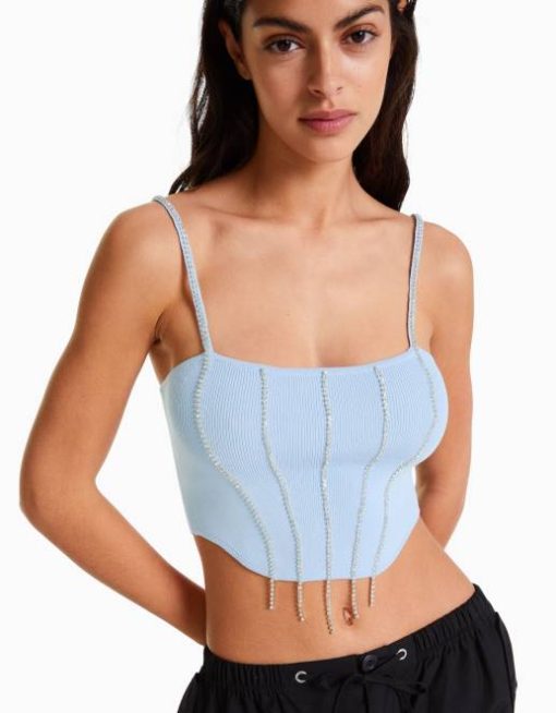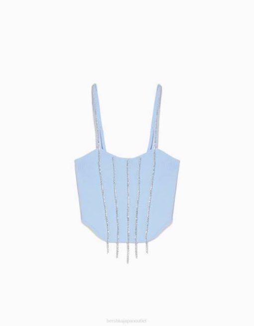 女性 Bershka ストラップニット トップ 6044766 衣類 青