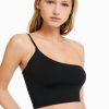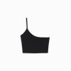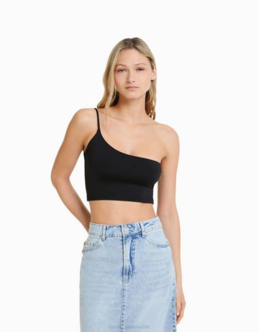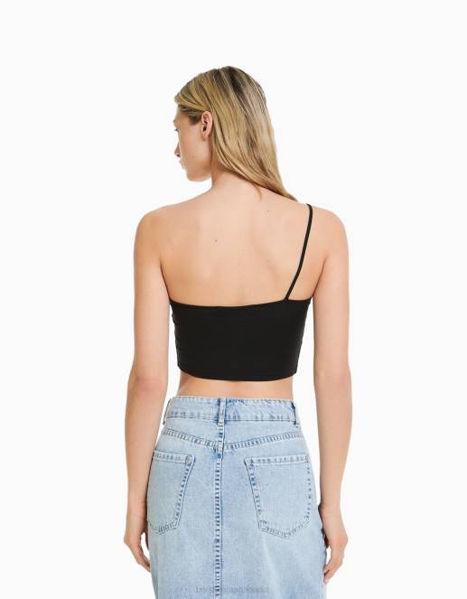 女性 Bershka ストラップ付きアシンメトリークロップトップ 6044750 衣類 黒