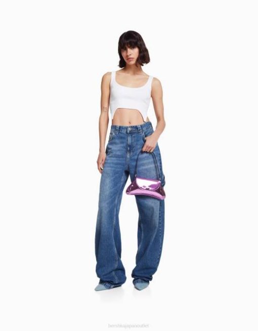 女性 Bershka ストラップ付きカラーメタリックバッグ 60442380 アクセサリー バイオレット