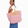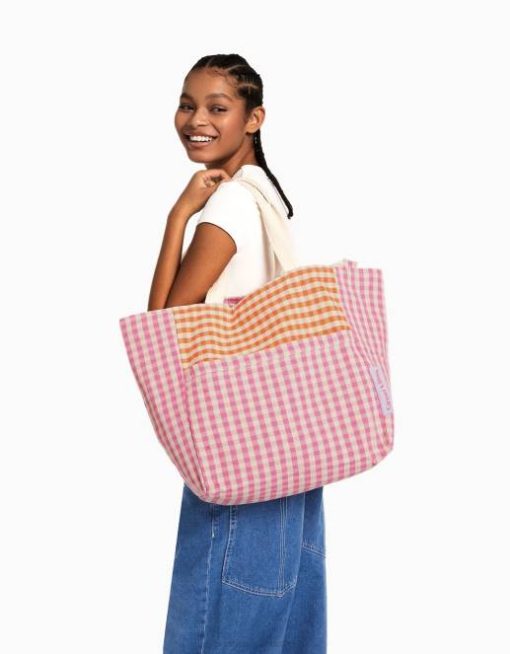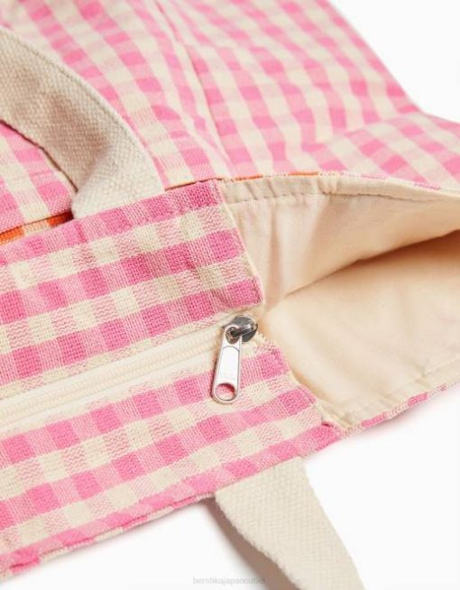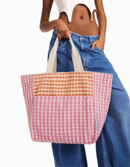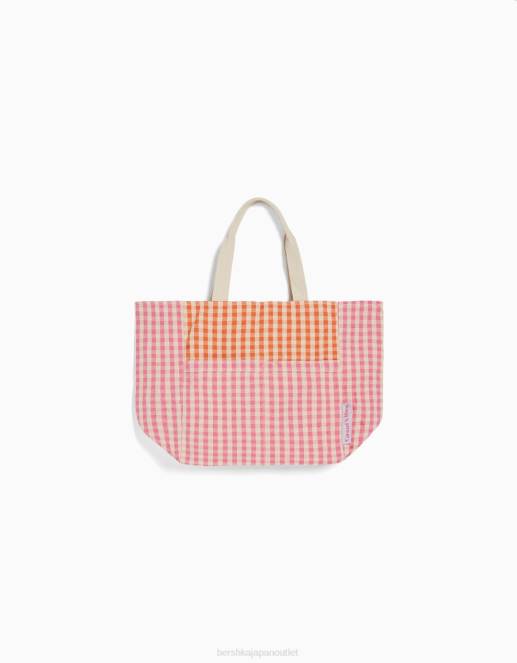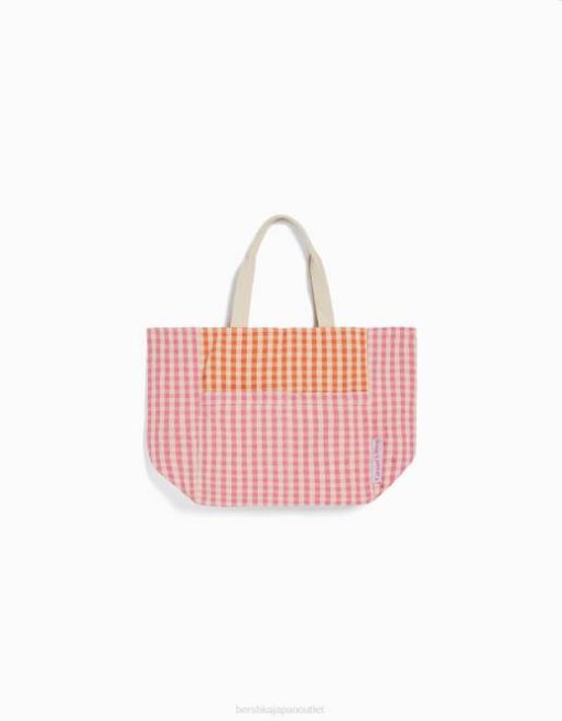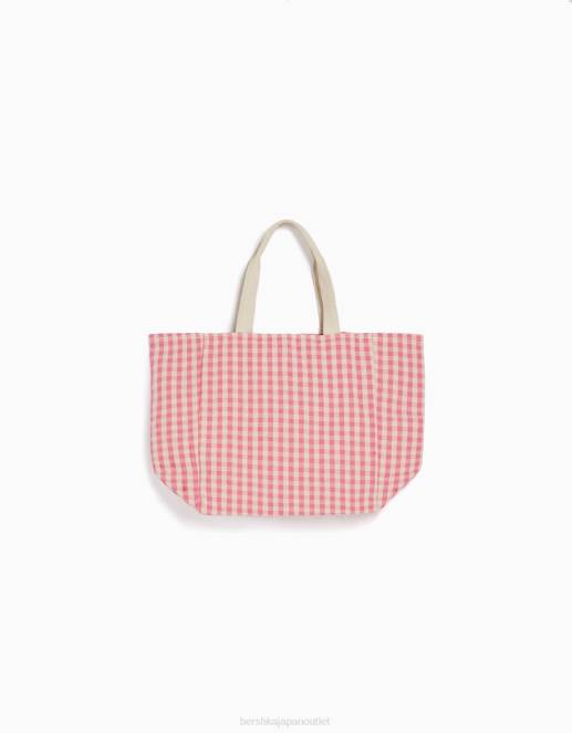 女性 Bershka ストラップ付きギンガムチェックショッパーバッグ 60441930 アクセサリー ピンク