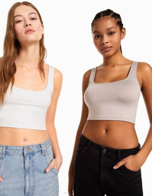 女性 Bershka ストラップ付きクロップトップ 2 枚パック 6044897 衣類 色とりどりの