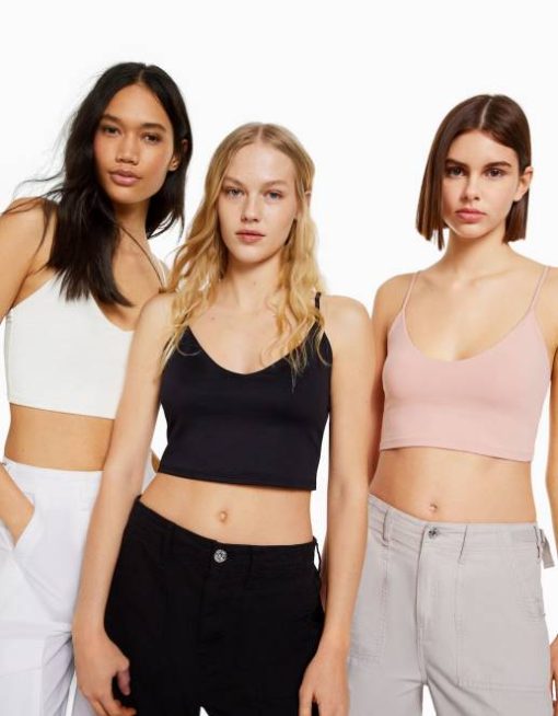 女性 Bershka ストラップ付きクロップトップ 3 枚パック 6044786 衣類 色とりどりの