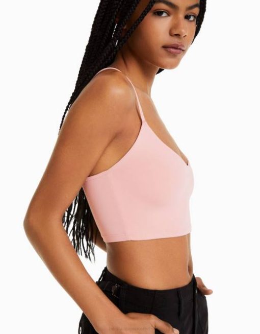 女性 Bershka ストラップ付きクロップトップ 6044818 衣類 ピンク