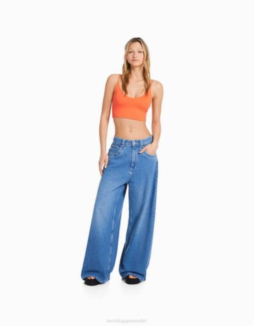 女性 Bershka ストラップ付きクロップトップ 6044819 衣類 オレンジ