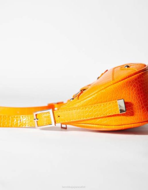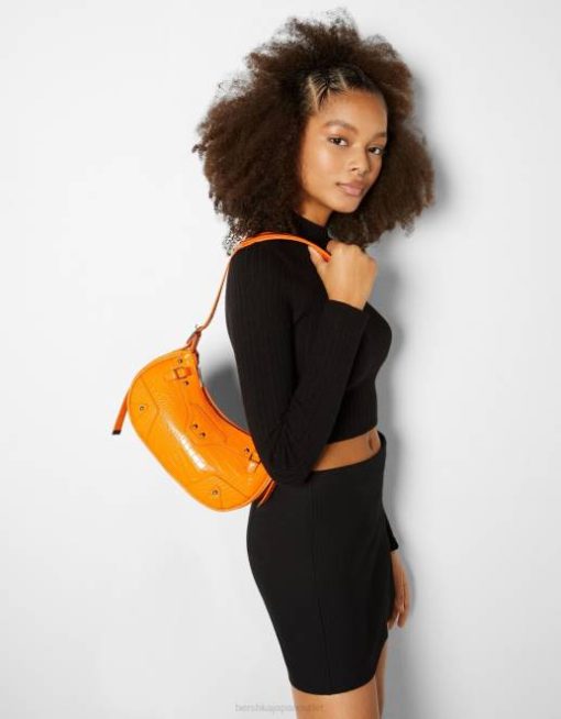 女性 Bershka ストラップ付きスタッズ付きフェイクレザーバッグ 60442371 アクセサリー オレンジ
