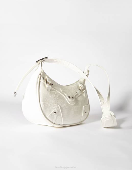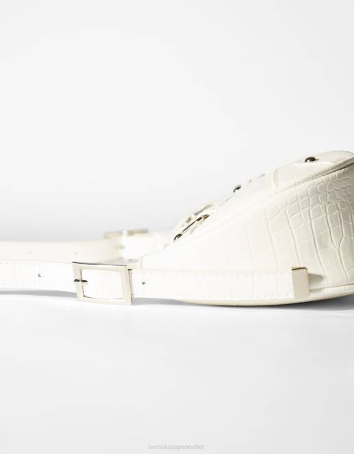 女性 Bershka ストラップ付きスタッズ付きフェイクレザーバッグ 60441921 アクセサリー 白
