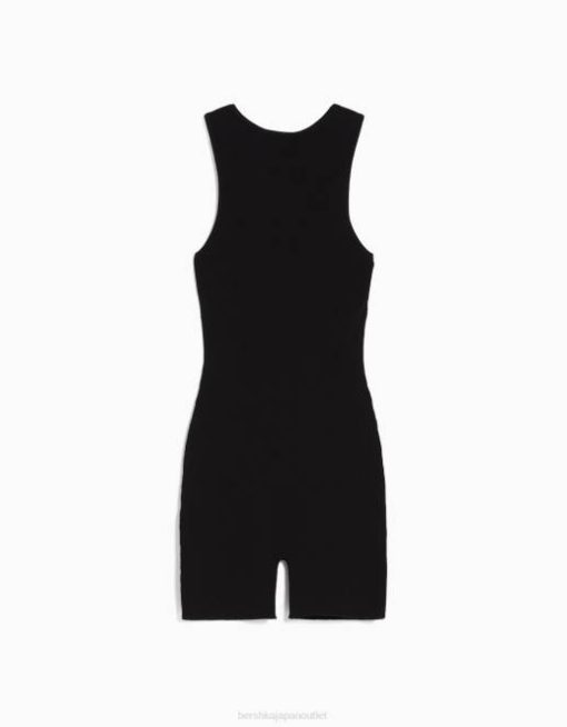 女性 Bershka ストラップ付きナイロンジャンプスーツ 60444084 衣類 黒
