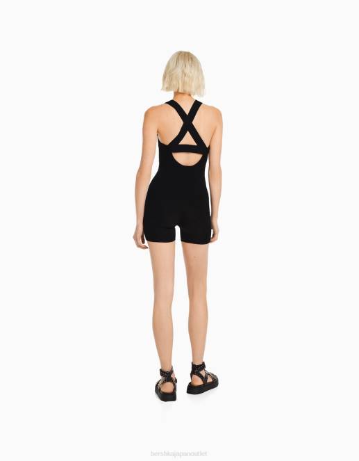 女性 Bershka ストラップ付きナイロンジャンプスーツ 604454 衣類 黒