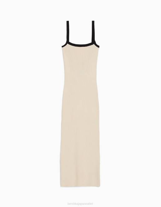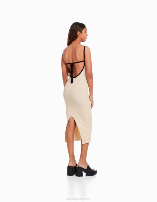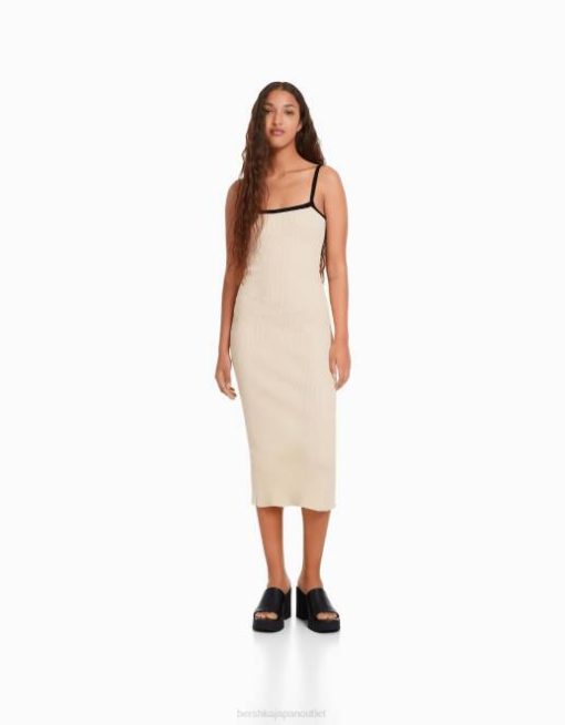 女性 Bershka ストラップ付きミディドレス 6044211 衣類 クリーム