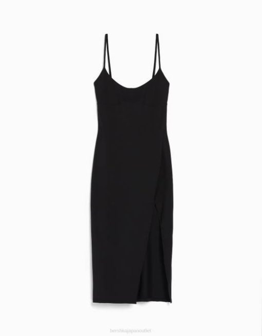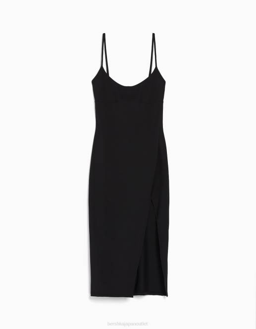女性 Bershka ストラップ付きミディドレス 604463 衣類 黒