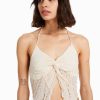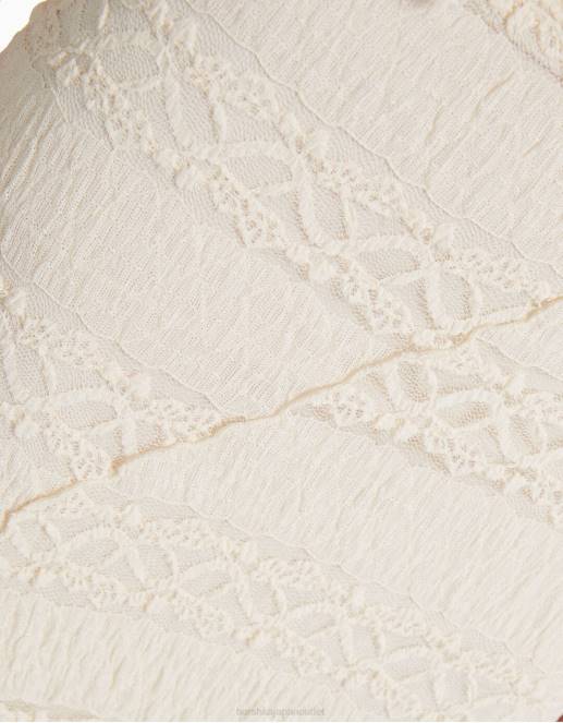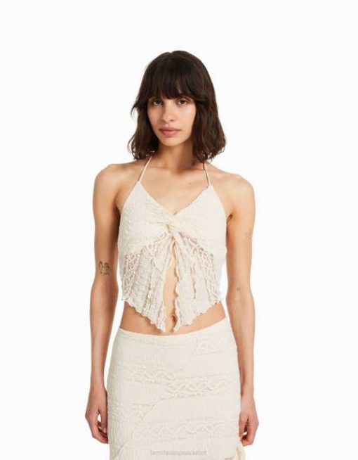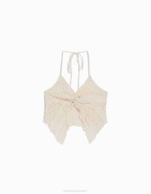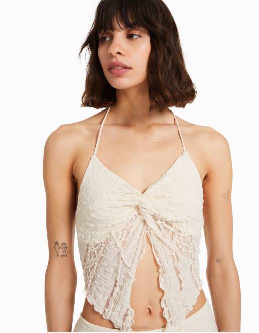 女性 Bershka ストラップ付きレーストリムトップ 6044751 衣類 クリーム