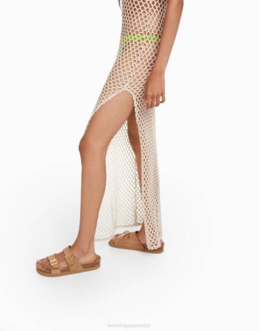 女性 Bershka ストラップ付きロングメッシュドレス 6044958 衣類 クリーム